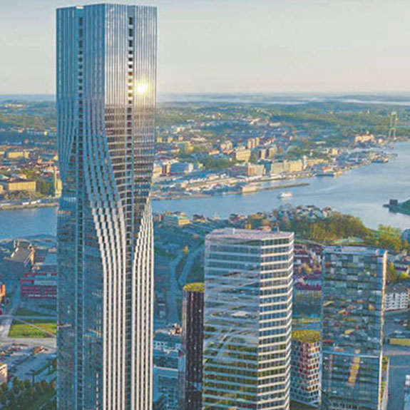 Karlatornet är Nordens högsta byggnad, med sina imponerande 246 m. Här levererade R-con sex dieselaggregat för olika tryckzoner.